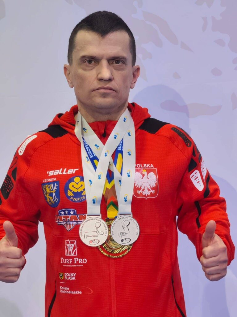Zawodnik zaliczył komplet podejść (9/9) i zdobył małe srebrne medale w przysiadzie oraz wyciskaniu.